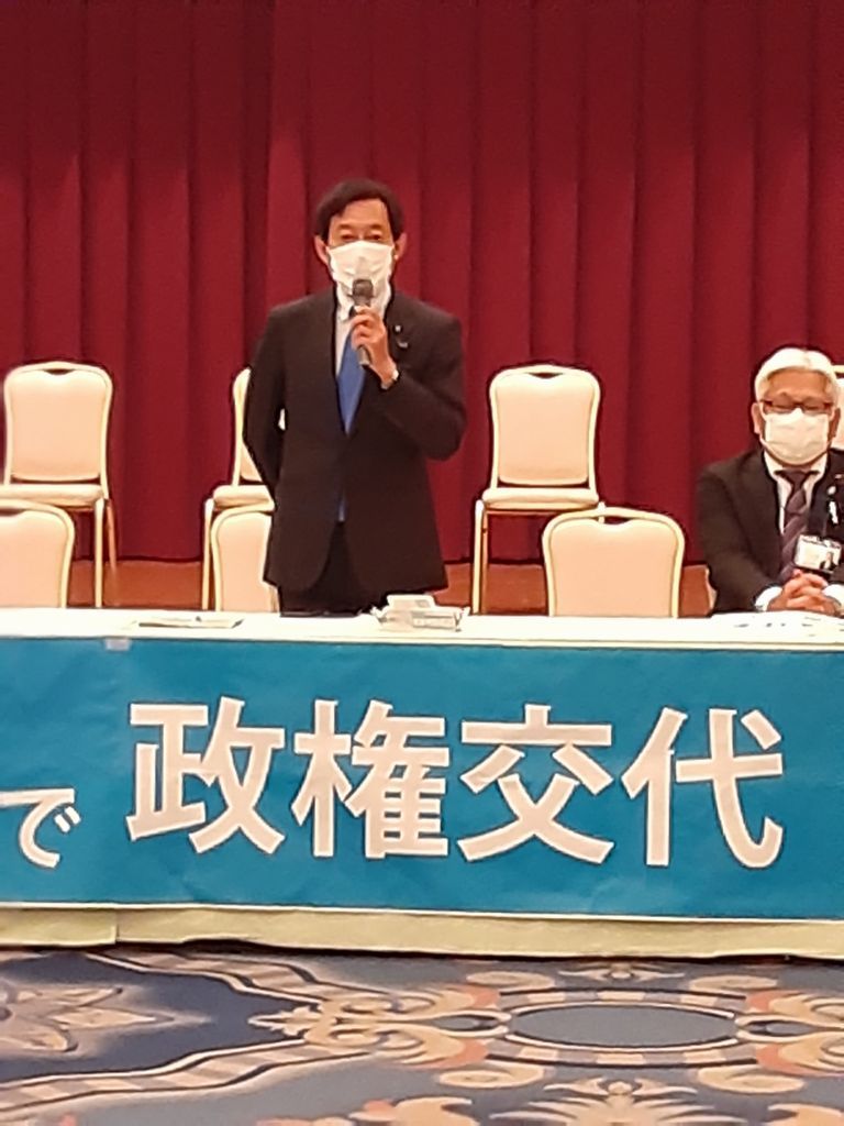 党の国対委員長代理と県連代表を兼ねる武内氏は「戦争のできる国を作り、公文書改竄などで行政をゆがめた自公政権を変えるのが私たちの責任」、やはり国対委員長代理で元防衛政務官の広田氏は「私の宝である自衛隊の皆さんに、憲法違反の政治で命を賭けさせてはならない。食料自給率が37%まで落ちた今、農林水産業や中小事業者への支援が必要だ」と決意を述べた。